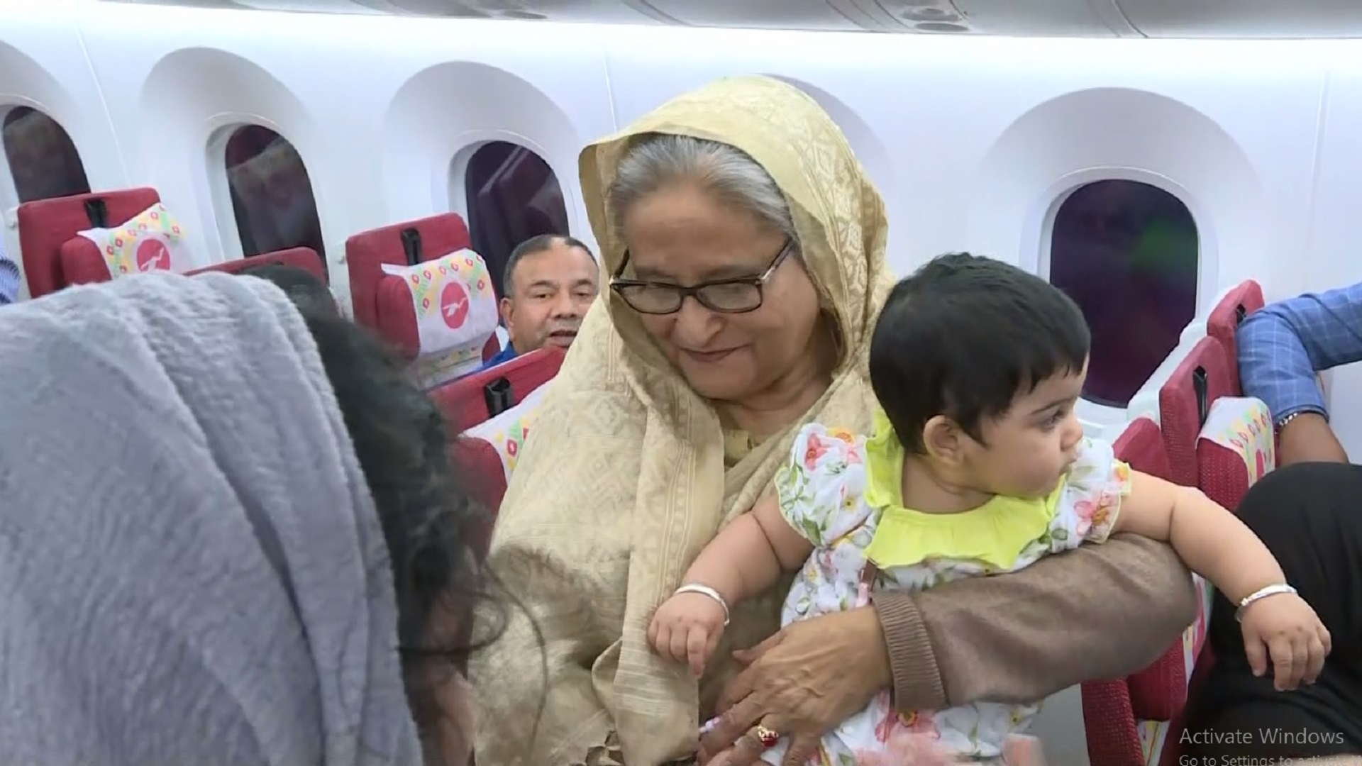 বিমানে শিশুকে কোলে নিয়ে আদর করলেন প্রধানমন্ত্রী