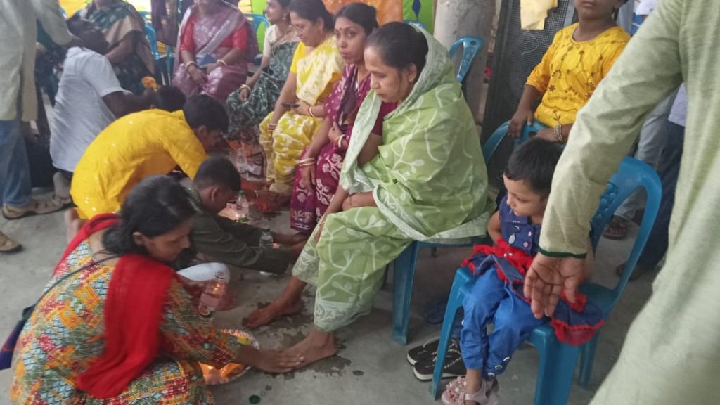 মায়ের পা ধুয়ে মিষ্টিমুখ করিয়ে শ্রদ্ধা নিবেদন ৫০ সন্তানের
